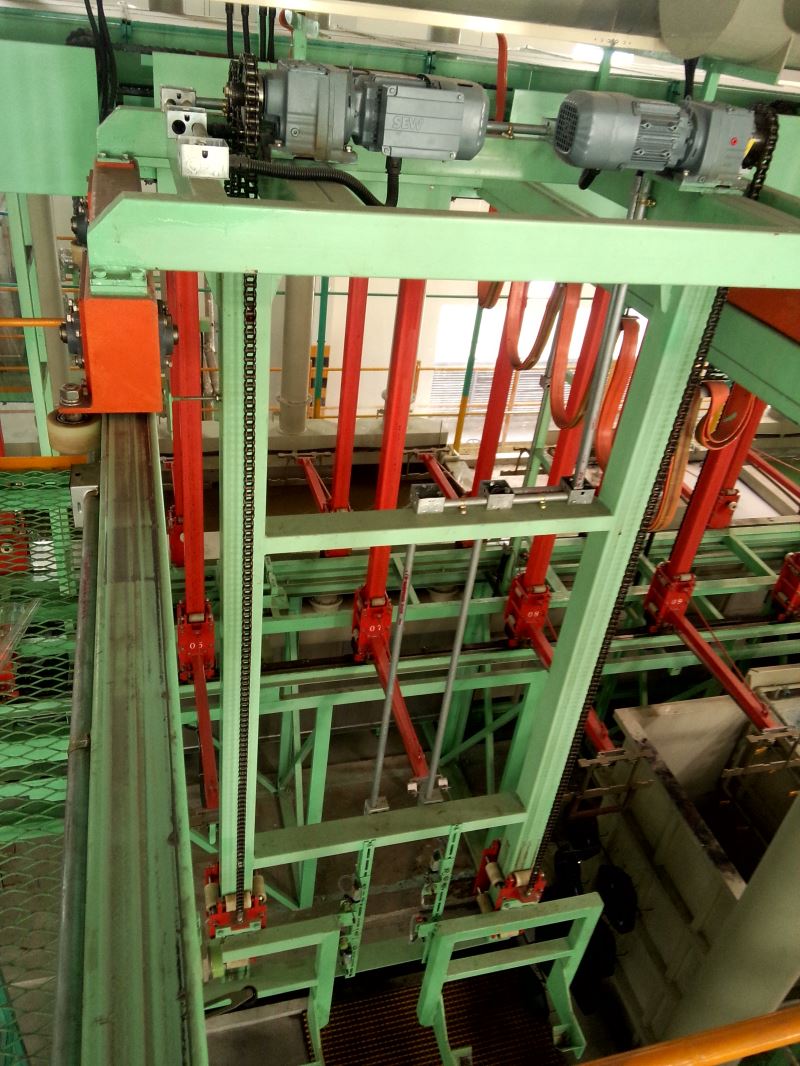 垂直升降式電鍍生產(chǎn)線是一種環(huán)形運(yùn)行的雙鏈條驅(qū)動(dòng),以上下升降完成各個(gè)工序的生產(chǎn)線;