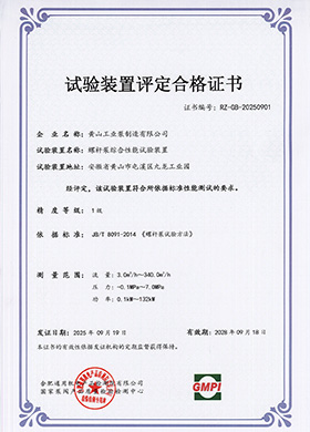 螺桿泵綜合性能實(shí)驗(yàn)裝置評(píng)定證書(1級(jí))
