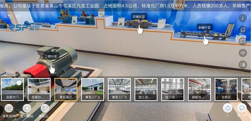 企業(yè)VR功能可以滿足客戶在手機(jī)端觀看黃泵工廠、辦公場所和展廳設(shè)備等功能,真正做到足不出戶的參觀體驗(yàn)。