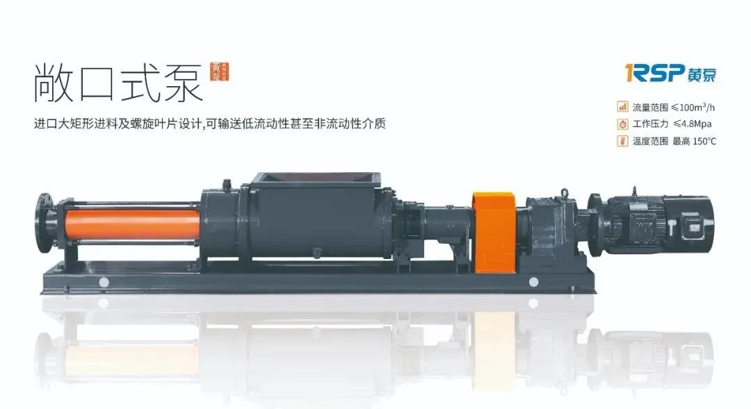黃泵敞口式單螺桿泵進(jìn)口腔體為矩形進(jìn)料斗設(shè)計(jì),內(nèi)裝有進(jìn)料螺旋葉片,可輸送高粘度、流動(dòng)性差或非流動(dòng)性介質(zhì),如脫水污泥等。